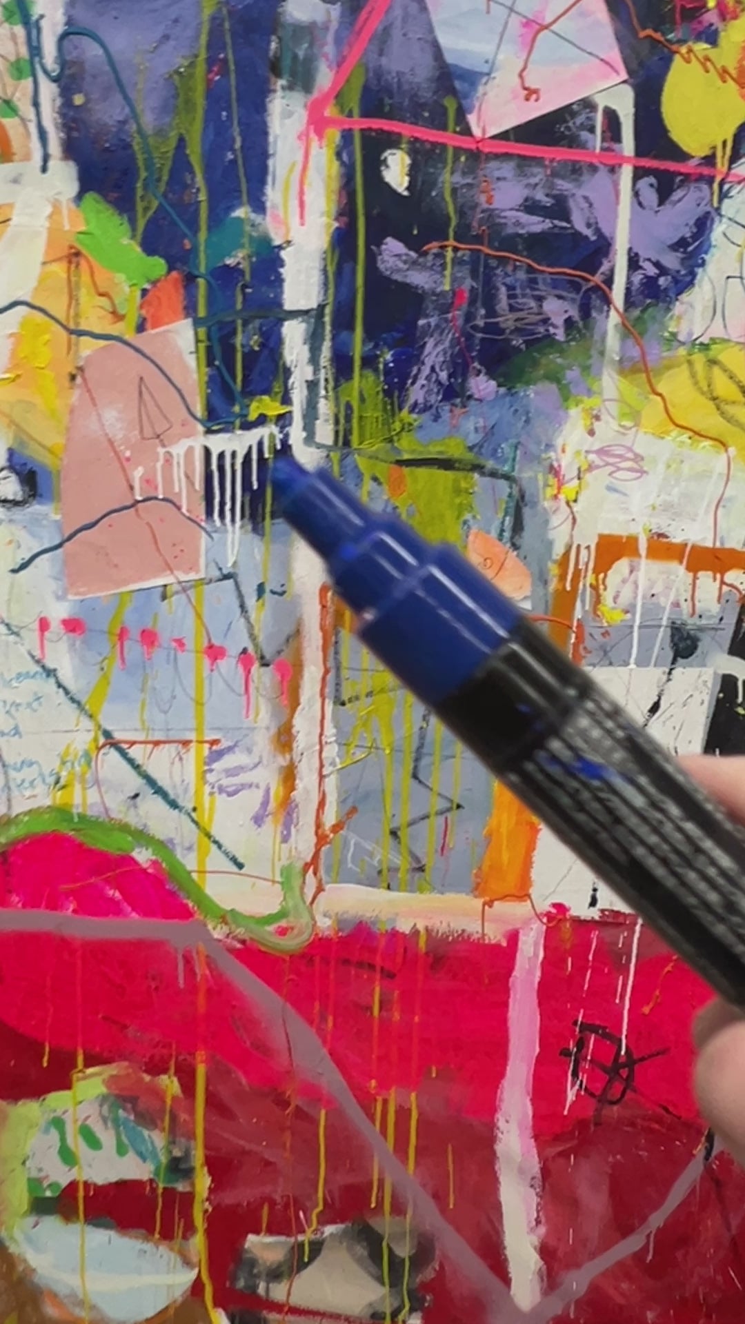 Paint, collage, spray paint on canvas. Ships rolled up un-stretched.