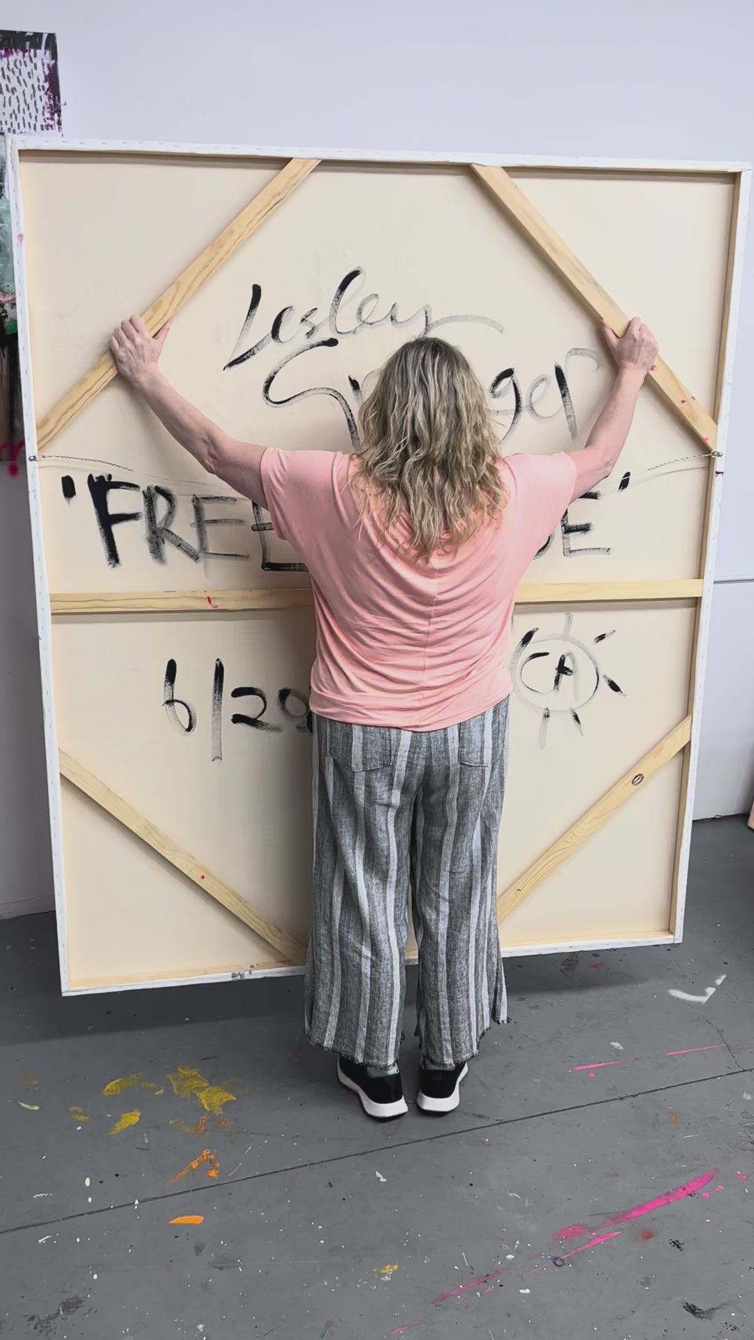 Paint, collage, spray paint on canvas