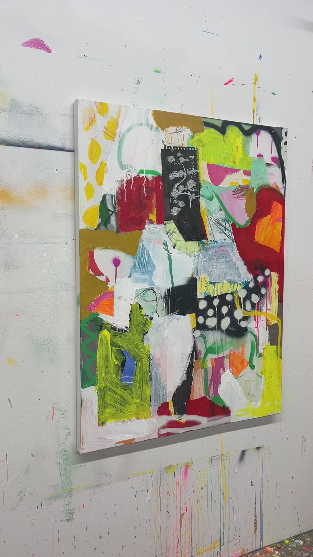 Paint, collage, spray paint on canvas